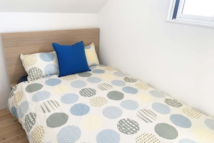 2階の12畳のフリースペースにダブルベッド2台を設置しています。
