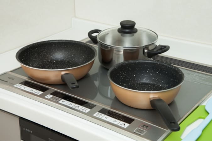 食器類一式(お皿、お箸、コップ等)、調理器具一式(フライパン、おたま等)、冷蔵庫、電子レンジ、炊飯器、なべ、卓上コンロ、トースター、ワインオープナー